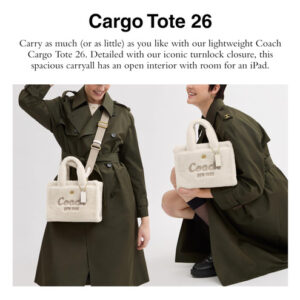 Bolsa de carga COACH 26, B4/Chalk — Notas do editor: Carregue o quanto quiser com nossa bolsa leve Coach Cargo 26. Detalhada com nosso icônico fecho giratório, esta bolsa espaçosa tem um interior aberto com espaço para um iPad – Tela e tosquia: feita para durar, esta sacola versátil para mulheres é feita com nossa lona e couro duráveis – para uma bolsa Coach elevada capaz de se adaptar a qualquer aventura – Estilo de três maneiras: carregá-la pelas alças superiores ou usá-la no ombro e na tiracolo com a alça removível – É tudo nos detalhes: fecho com zíper, forro de tecido, alças com queda de 10,5 cm, fecho externo com fecho giratório e bolsos de pressão, alça removível com abertura de 24" para ombro ou roupa tiracolo. Compatível com um iPad. 10 1/4" L x 7 3/4" A x 5" W — Este é o COACH: Ter a coragem de ser real desde 1941. COACH é a Original American House of Leather, com um legado de artesanato e uma comunidade que defende a coragem de viver autenticamente