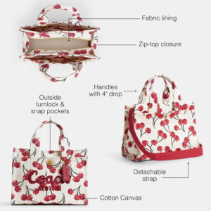 Bolsa Coach Cargo 26, Chalk Multi – Notas do editor: Carregue o quanto quiser com nossa bolsa leve Coach Cargo 26. Detalhada com nosso icônico fecho giratório, esta bolsa espaçosa tem um interior aberto com espaço para um iPad – Tela de algodão: feita para durar, esta sacola versátil para mulheres e homens é feita com algodão proveniente de fazendas que usam práticas agrícolas regenerativas e inspirada em nosso compromisso de reduzir nosso impacto no planeta – Estilo de três maneiras: carregue esta sacola com estampa de cerejeira pelas alças superiores ou use no ombro e na tiracolo com o alça ajustável — Está tudo nos detalhes: fecho de zíper, forro de tecido, alças com queda de 10,5 cm, fecho externo e bolsos de pressão, alça removível com abertura de 24" para uso nos ombros ou na tiracolo. 10 1/4" L x 7 3/4" A x 5" W — Este é o COACH: Ter a coragem de ser real desde 1941. COACH é a Original American House of Leather, com um legado de artesanato e uma comunidade que defende a coragem de viver autenticamente