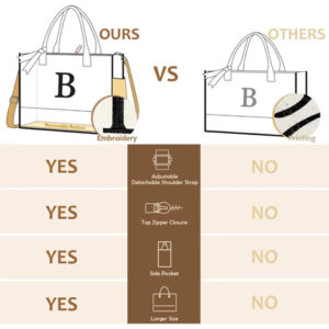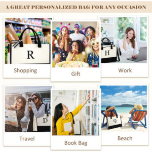 Sacola inicial de lona QLOVEA para mulheres Cestas de presentes de Natal para mulheres Perfeitas para guardar presentes de Natal, esta cesta inicial de presentes de Natal vem com iniciais para tornar seu presente personalizado e especial! Presentes de dama de honra As bolsas de lona iniciais estão sempre presentes em casamentos e são usadas como presentes de dama de honra, com cada dama de honra tendo sua própria bolsa de lona inicial. Sacola de lona para mulheres As sacolas de lona femininas são reutilizáveis e não são apenas muito personalizadas, mas também têm uma grande capacidade que você pode levar em viagens de compras. Para poder usá-los repetidamente, eles só devem ser lavados à mão. – CAPACIDADE EXTRA GRANDE: Você receberá uma sacola de lona e uma bolsa de maquiagem nesta embalagem. A sacola (17" x 13,2" x 6,7") é espaçosa o suficiente para guardar laptop, lancheira, alimentos, roupas, sapatos, toalhas, maquiagem, revistas e outras mercadorias para uso diário. Pode ser usado como sacola de compras, sacola de compras ou academia, sacola de viagem ou bolsa de praia. Além disso, você pode usar a bolsa de maquiagem (11" x 7,5" x 3,5") para carregar seu estojo higiênico, carteira, chaves e outros objetos de valor, que é a parceira perfeita para sua viagem e trabalho — PRESENTES PERSONALIZADOS PARA MULHERES: as sacolas de lona para mulheres podem ser um presente perfeito para apreciação de professores, noivas, damas, presentes de chá de panela, presentes de casamento, presentes de aniversário para melhor amiga, anfitriã, colegas de trabalho, chefe, esposa, mãe, avó, filha e irmãs. Além disso, a sacola de lona personalizada pode ser uma forma adorável de agradecer suas damas de honra, presentes de anfitriã, presentes de noiva, dama de honra, mãe do noivo e convidados pelo amor e apoio em seu dia especial — fecho de zíper superior, 2 bolsos e alça ajustável: o zíper superior de comprimento total mantém seus itens seguros e protegidos, protegendo sua privacidade. O bolso interno (8,1 “x 5,7") para guardar seus itens pequenos, como telefone, chaves e cartões. O bolso lateral (8,9" x 6,3") permite acessar facilmente sua garrafa de água, óculos de sol, guarda-chuvas, etc. A alça ajustável (26,6"-51,2") e removível não aperta seus ombros, mesmo que você coloque coisas pesadas dentro. Você pode usar a bolsa como alça, bolsa de ombro ou bolsa tiracolo — Bordado durável e com monograma: a sacola inicial é feita de 100% 16 lona de algodão natural de onças, pode carregar 60 libras, muito mais forte do que outras. A bolsa para professores tem um fundo removível para proteger melhor seus itens. Todas as costuras são reforçadas com pontos em “X” para garantir a durabilidade. Nossa sacola de presente de casamento é bordada de alta densidade em vez de impressão, sem cheiro forte e mais verde. O design clássico e o acabamento requintado fazem desta bolsa uma sacola elegante que nunca está desatualizada. Lavável à mão e reutilizável: o forro de nossa sacola de praia de lona personalizada é revestido com PVC, impermeável e fácil de limpar. Você pode lavar esta sacola com monograma somente à mão e não secá-la na secadora e passá-la a ferro. (Nota: a lavagem na máquina não é sugerida.) Nossa sacola de presentes para mulheres pode durar anos na maioria das vezes. Se for danificado (não por causas humanas) dentro de 1 ano, entre em contato conosco a qualquer momento para solicitar um serviço de substituição ou reembolso, nosso serviço ao cliente tentará responder dentro de 24 horas