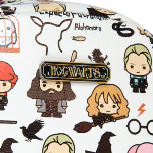 Esta é uma mini mochila Harry Potter Chibi oficialmente licenciada!! Harry Potter se tornou o bruxo mais famoso do planeta! Esta mini mochila de Harry Potter é exatamente o que qualquer fã obstinado de Potter precisa adicionar ao seu inventário de itens divertidos! Esta mini mochila apresenta um padrão extravagante de personagens no estilo chibi, como Harry, Ron, Hermoine, Hagrid, Hedwig, Malfoy e Dobby the Elf. Ele também tem outros designs relacionados a Potter, como logotipos de animais da Grifinória, Lufa-Lufa, Corvinal e Sonserina, The Sorting Hat, The Hogwart Express e muito mais! Possui um bolso frontal com zíper, um compartimento principal com zíper, uma alça superior para facilitar o transporte e alças traseiras ajustáveis. A frente apresenta um aplique de metal em relevo de Hogwarts! Você vai adorar essa mini mochila Harry Potter, tenho certeza! – Este é um produto Harry Potter oficialmente licenciado — Esta mini mochila apresenta um padrão extravagante de personagens no estilo chibi, como Harry, Ron, Hermoine, Hagrid, Hedwig, Malfoy e Dobby the Elf. Ele também tem outros designs relacionados a Potter, como logotipos de animais da Grifinória, Lufa-Lufa, Corvinal e Sonserina, The Sorting Hat, The Hogwart Express e muito mais! – A frente apresenta um aplique de metal elevado de Hogwarts – 1 bolso frontal com zíper, 1 compartimento principal com zíper, alça superior para facilitar o transporte – Alças traseiras ajustáveis/Ótima sensação de couro sintético