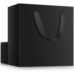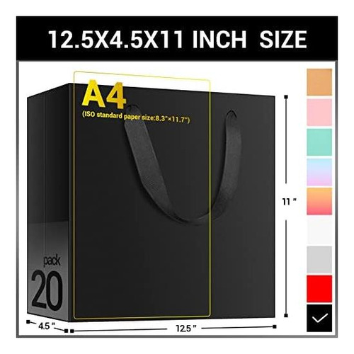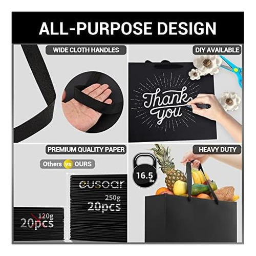 PRODUTO: Sacos grandes para presentes pretos EUSOAR, 20 peças 12,5 x 4,5 x 11 sacos de compras pretos de papel Kraft com alças a granel, sacos de varejo de mercadorias para negócios, mercearia artesanal, boutique, lembrancinhas, casamento