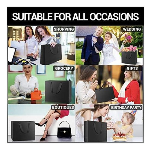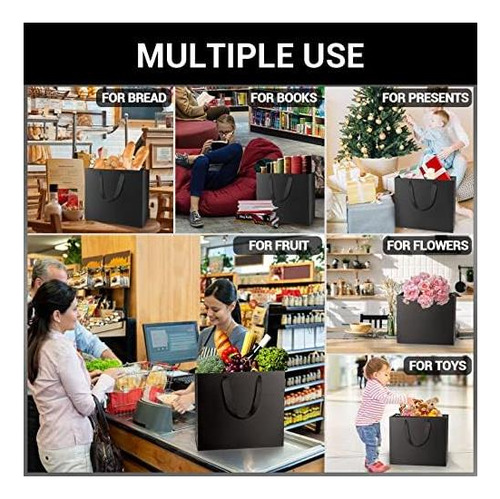 • ?Uso múltiplo?Ótimo como sacolas de presente para lembrancinhas de aniversário, casamento, Natal. Também adequado como sacolas de compras e retiradas para varejo, mercadorias, negócios, embalagem de almoço, cozinha, restaurante e armazenamento de alimentos.