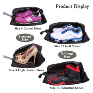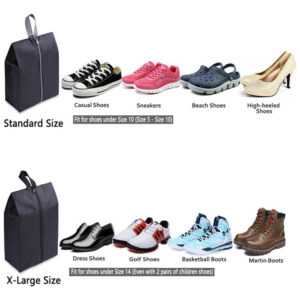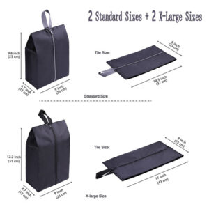 Conjunto de 4 bolsas de viagem YAMIU de nylon impermeável com zíper para homens e mulheres, pretas — ótimas para viajar. Bom design para uso doméstico e em viagens. Ótimo para viajar, carregar sapatos de e para a academia ou para manter seus sapatos livres de poeira no armário (também pode ser usado como bolsa de maquiagem, bolsas de produtos de higiene pessoal e para outros usos). [Material impermeável] Nylon — 2 opções de tamanhos perfeitos Conjunto de 4, 2 tamanhos padrão +2 tamanhos GG = Tamanho perfeito para sapatos femininos e masculinos. Tamanho padrão: (9" L x 4,7" L x 9,8" H), adequado para sapatos abaixo do tamanho 10. Tamanho GG: (9" L x 4,7" L x 12,2" A), grande o suficiente para sapatos masculinos entre o tamanho 10 e o tamanho 14. Também pode armazenar 2 pares de sapatos infantis, ótimas bolsas de armazenamento de sapatos infantis. – Material impermeável: tecido de nylon. Impermeável, leve e perfeito para embalar sapatos e manter todo o resto limpo. Ótimas bolsas de sapatos para dançar, jogar basquete, tênis, golfe, na academia e assim por diante. – Zíper forte. Zíper profissional feito sob medida com dentes de zíper lisos premium, fecha suavemente e é durável. O design do zíper central facilita a entrada e a retirada de itens. – Matérias-primas premium de alta qualidade, resistentes e duráveis. Perfeito para embalar sapatos e manter tudo separado.