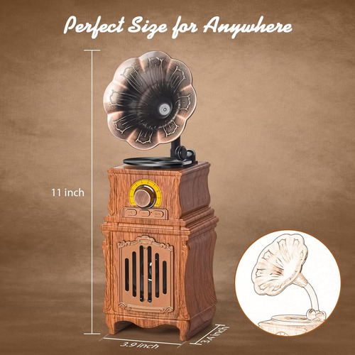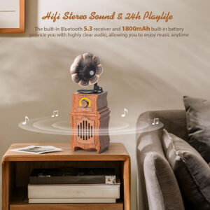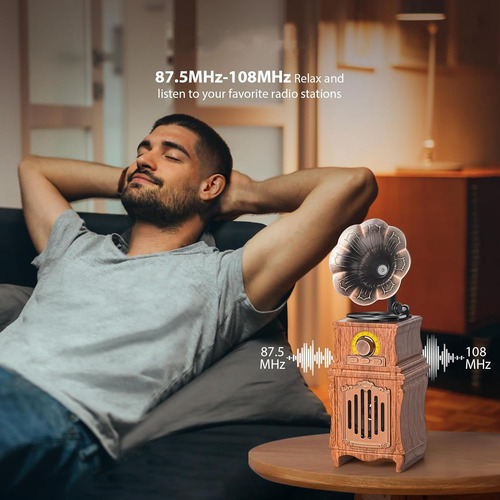 [Presente perfeito para amantes de música e decoração vintage] A embalagem requintada e a aparência elegante o tornam o presente perfeito para amantes da música. Este encantador alto-falante com recursos de rádio vintage também é a escolha perfeita para quem aprecia decoração vintage.