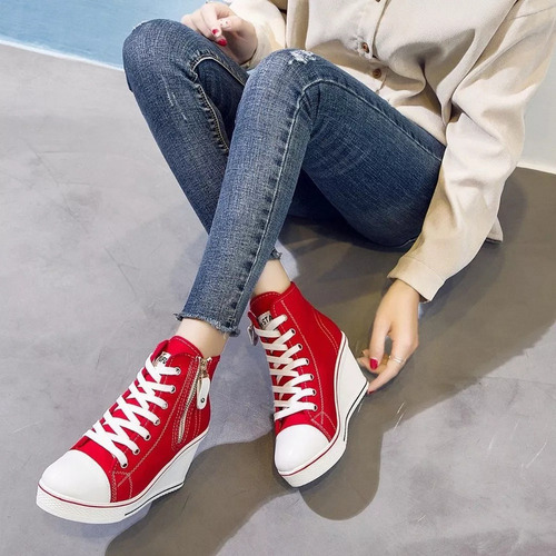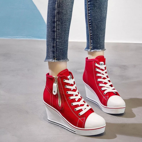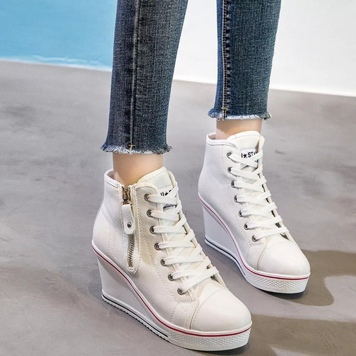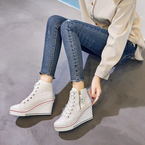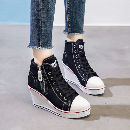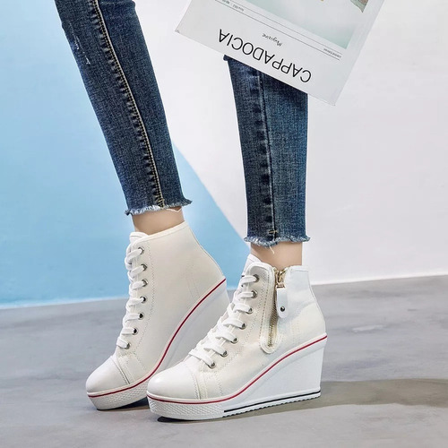 Women's Casual Thick Sole Canvas Tennis High Heels |