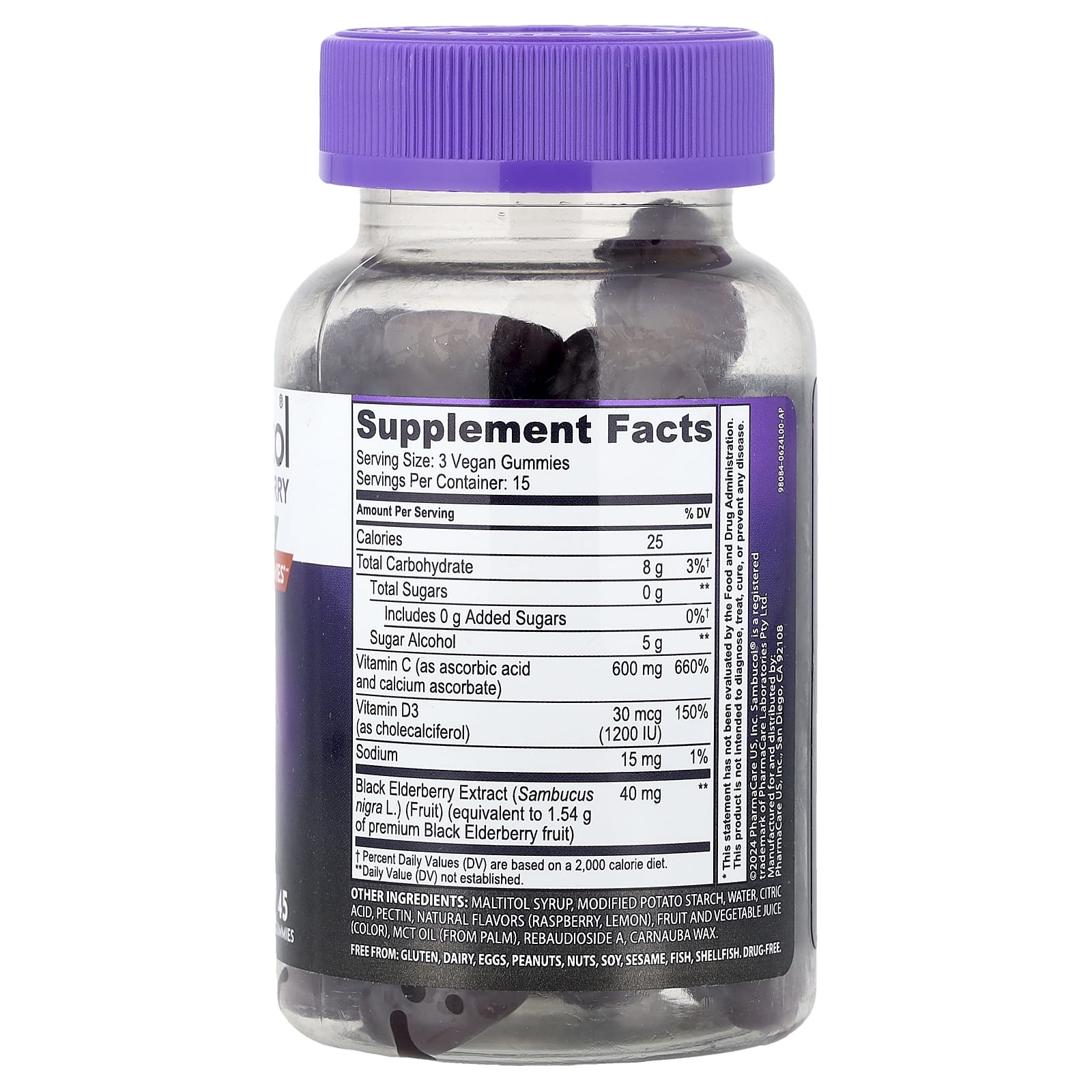 Sambucol Gomas de Sabugueiro Preto Zero Açúcar Gomas para Imunidade Tripla 45 Gomas – Sambucol Suplementos Ervas Sabugueiro – Sambucus.