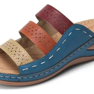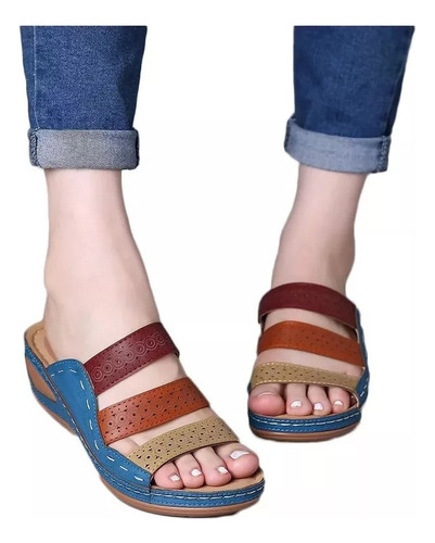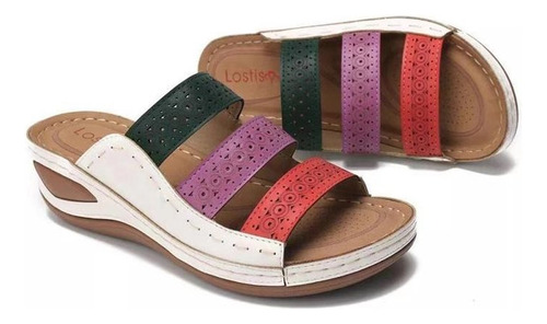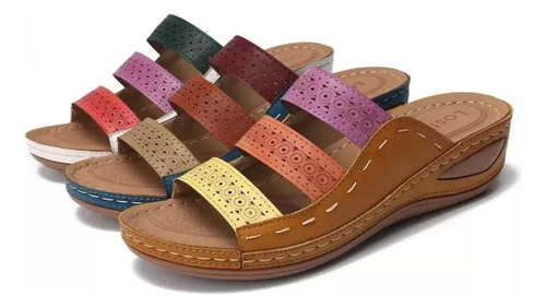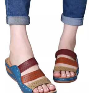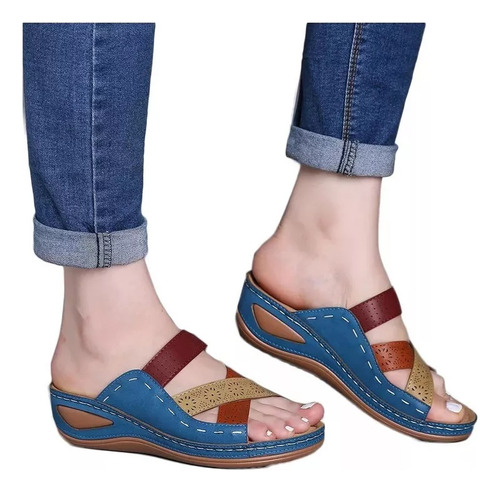 * Informações sobre o produto: chinelo de cunha Open Toe Colorblock Estilo de sandálias ortopédicas