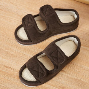 Fácil de colocar e tirar. As tiras superiores e do calcanhar podem ser ajustadas em altura usando o fecho, e a faixa de ajuste é ideal para diferentes níveis de inchaço. Este calçado para diabéticos é ideal para pessoas com pés inchados. Confortável para pessoas com neuropatia periférica, inchaço, joanetes e pés enfaixados.
