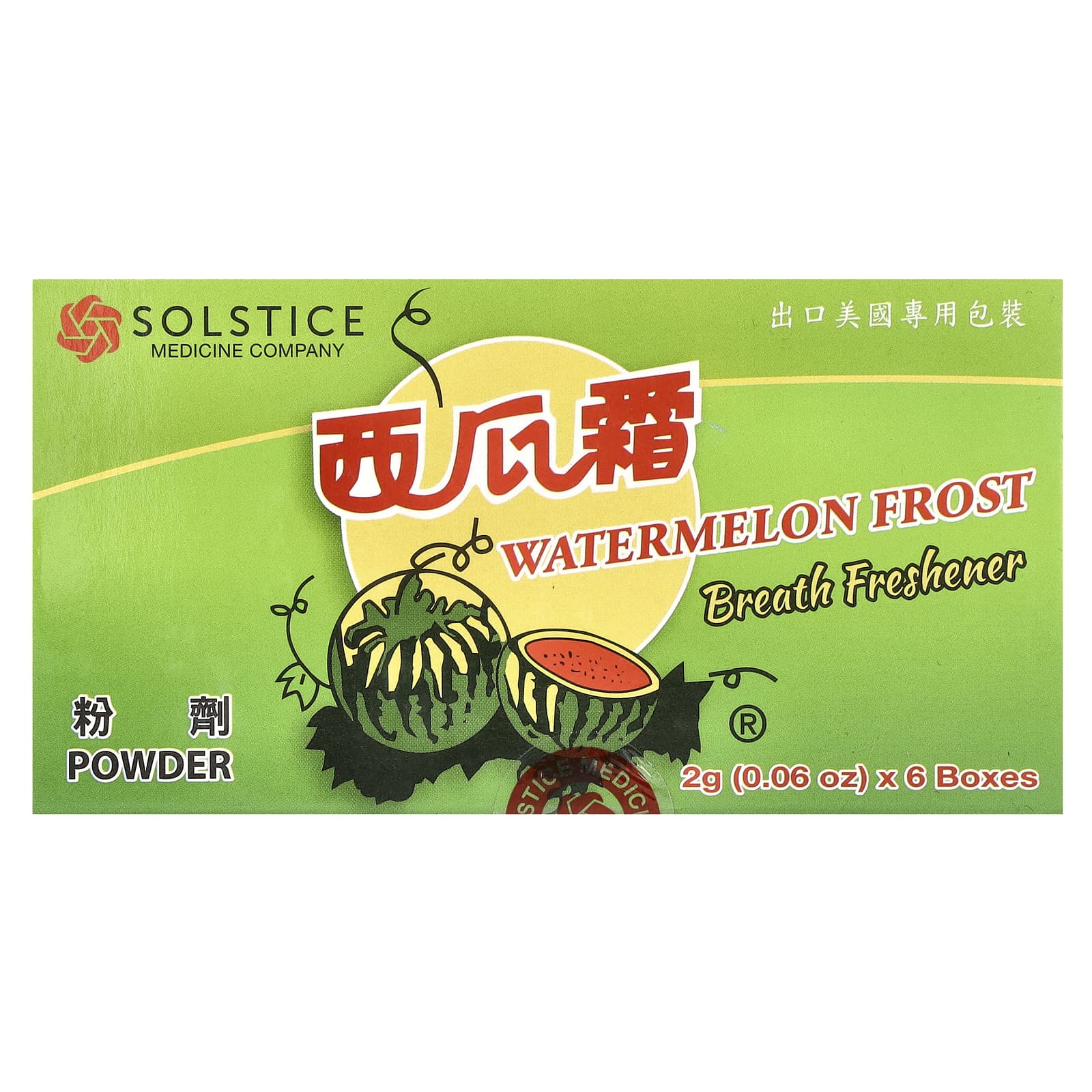 Benefícios: A geada de Melancia é um produto natural à base de ervas que vem sendo usado na China há séculos para aliviar o mau hálito e ao mesmo tempo proporcionar um sabor refrescante.