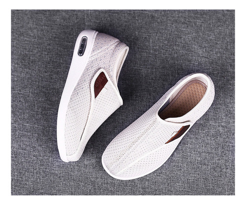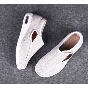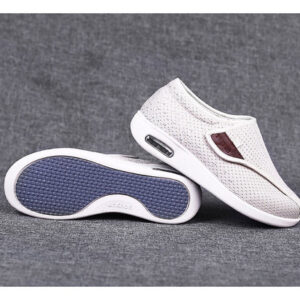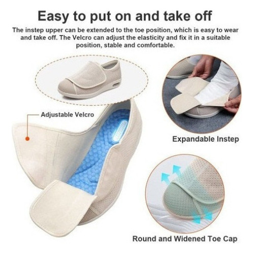 Sapatos Idosos de Ajuste Amplo e Ajustáveis – O peito do pé dos sapatos pode ser desdobrado na posição dos dedos, que é solto e confortável, fácil de calçar e tirar. Atacadores de velcro ajustáveis que se ajustam facilmente à largura e se adaptam à forma do pé, adaptando-se a diferentes morfologias de pé, especialmente para quem tem pés inchados e largos.