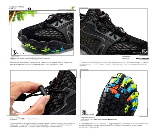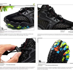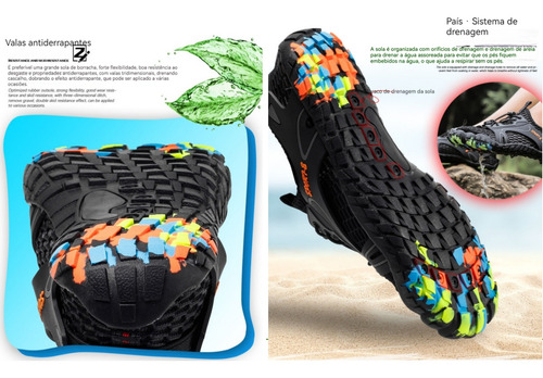 Função: Drenagem, secagem rápida, respirável, resistente ao desgaste, leve, antiderrapante