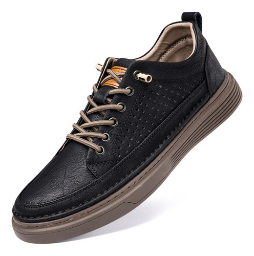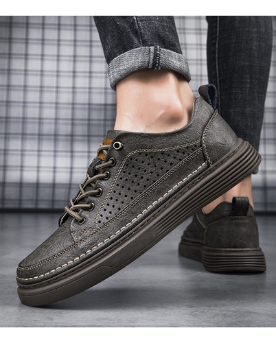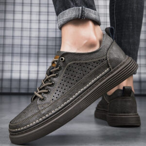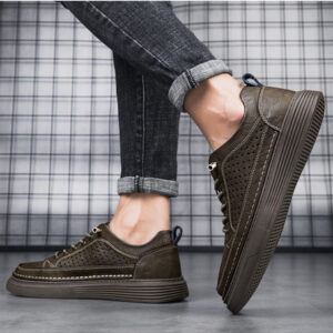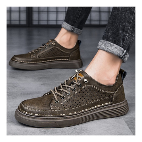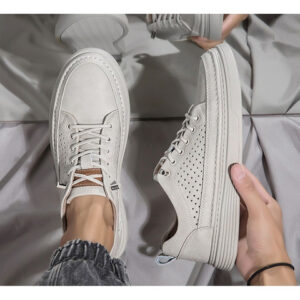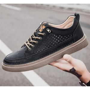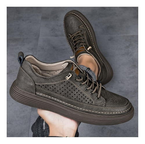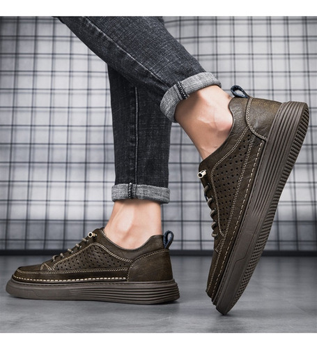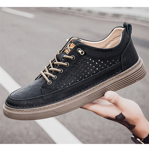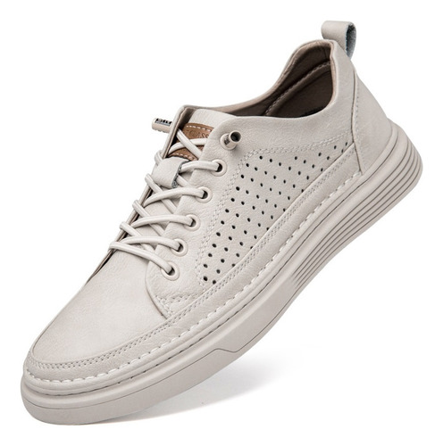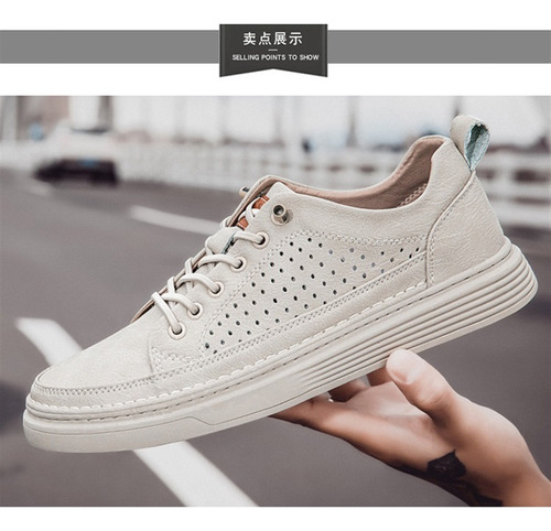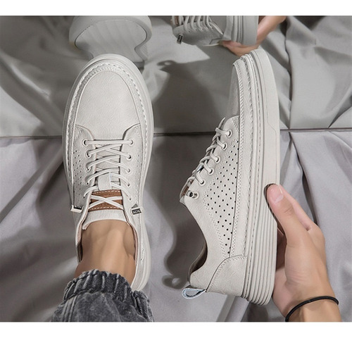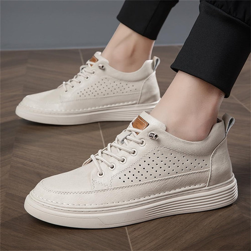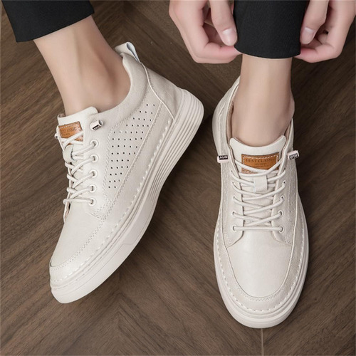 Men's Large Size Casual Shoes Breathable Board Shoes Cowhide Perforated Leather Shoes Small Size Hollow Shoes 38 |