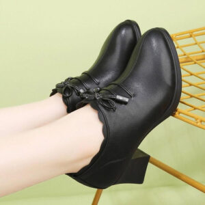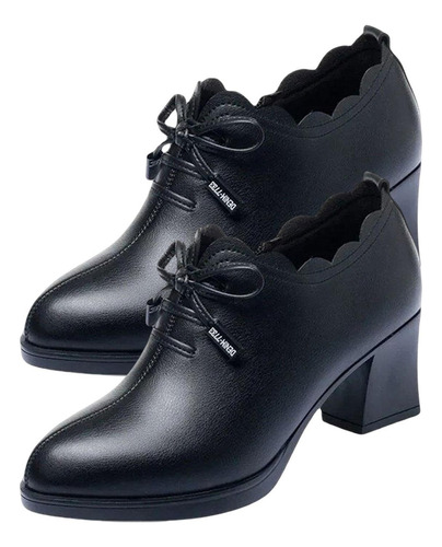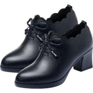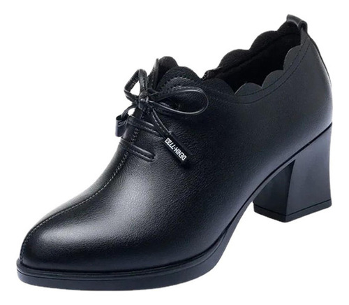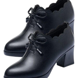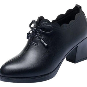 Design de salto em bloco: o sapato feminino com salto em bloco proporciona estabilidade e conforto, dando suporte enquanto você fica em pé o dia todo.