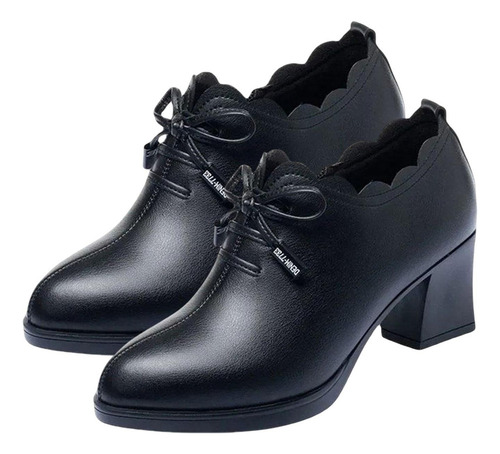 Sapatos de salto baixo robustos e elegantes para mulheres, sapatos casuais para festa e lazer, sapatos fechados