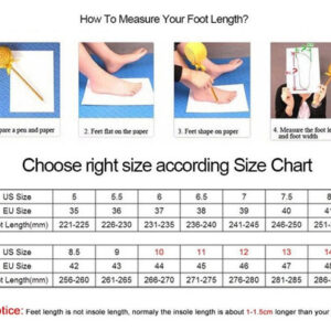 Somos tamanhos padrão da CN/UE. Escolha o tamanho correto com base no comprimento do pé se você estiver confuso sobre o tamanho.