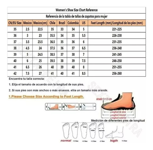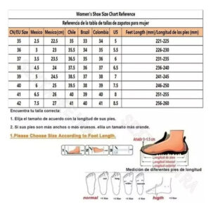 Verifique o comprimento do pé e o tamanho do calçado local antes de comprar. Nossos tamanhos de calçado são chineses e são muito diferentes dos tamanhos de calçado locais. Para evitar o risco de devoluções ou trocas, escolha o tamanho de calçado chinês que melhor se adapta a você com base nos tamanhos locais.