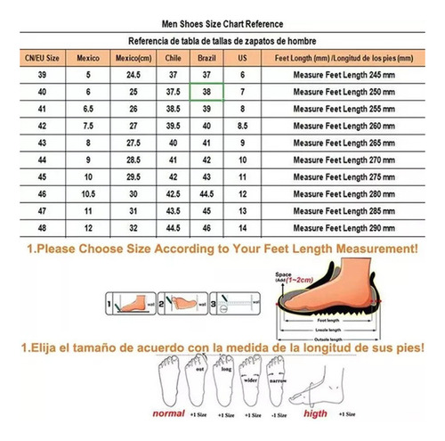 Nosso tamanho é padrão CN/UE, escolha o tamanho certo de acordo com o comprimento dos seus pés caso você confunda com o tamanho: Se seus pés forem mais grossos ou mais largos, escolha um tamanho maior: