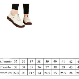 Tabela de tamanhos de calçados
