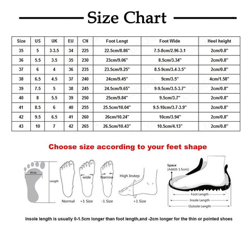 Tamanho: 2cm Tamanho: 37 US: 4,5 EU: 35 CN: 235 Comprimento do pé: 21,5cm Altura do salto: 2cm