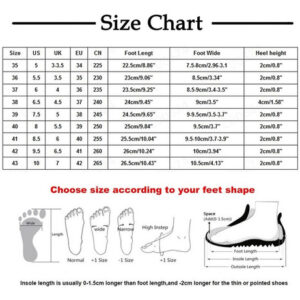 Tamanho: 41 Brasil: 6 UE: 40 CN: 255 Pé Comprimento: 25,5 cm Largura: 9,5-10 cm Altura do salto: 2 cm