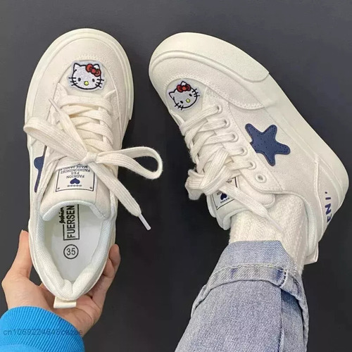 Números de modelo, sapatilhas sanrio hello kitty, tênis estéticos coreanos, elementos de moda, apliques, tipo de estampa, desenho animado, tipo de fecho, material de cadarço, nome da marca: tela, nome da marca: Aoger, origem do departamento do Brasil continental, nome do departamento: adulto,