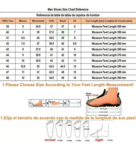 EU 45=BR 43= Comprimento do pé: 27,5 cm,