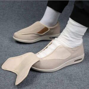 Fácil de colocar e tirar: design de fecho lateral de gancho e laço, fácil de ajustar a elasticidade, adequado para pessoas com mobilidade limitada ou pés sensíveis.