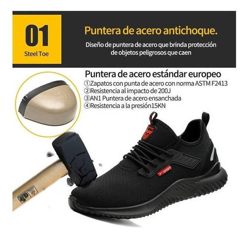 Biqueira de segurança de aço: Sapato de segurança de biqueira de aço composto para proteger contra riscos de impacto e compressão. Proteja seus pés de objetos pesados, rolando e caindo.