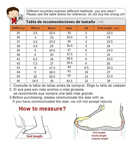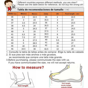 acuerdo con la longitud de tus pies: si tus pies son más gruesos ou más gruesos, elige un tamaño más grande: la imagen a continuación tabla de