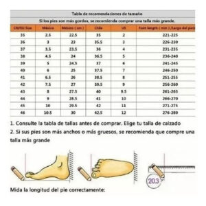 Nota: Por favor, escolha o produto que mais lhe convier de acordo com o tamanho. Este produto é de padrão europeu internacional. Se você não entender, por favor deixe uma mensagem e me diga o comprimento do seu pé. A sola interna elevada não pode ser removida.