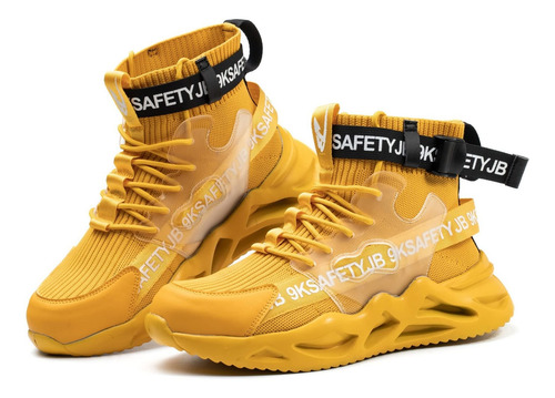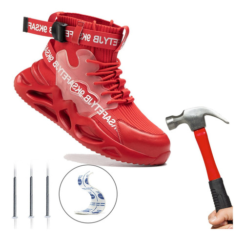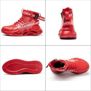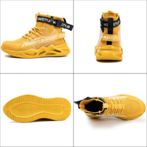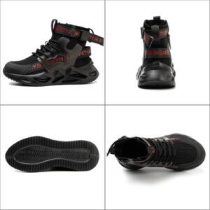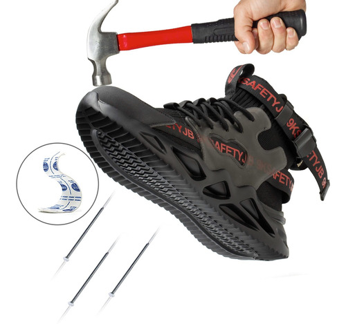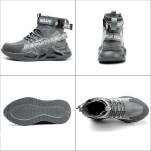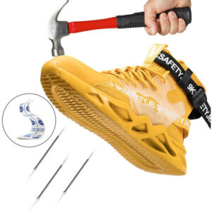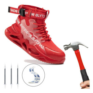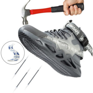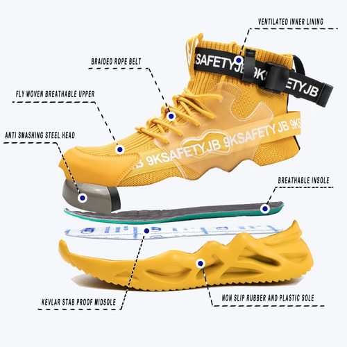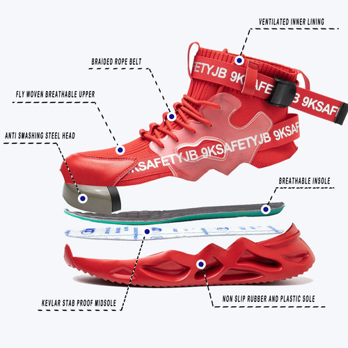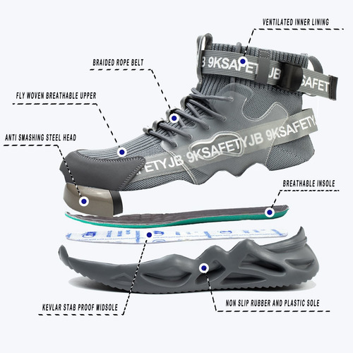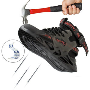 Leve e respirável – Um par de sapatos de biqueira de aço pesa cerca de 900 gramas. A parte superior de malha resistente à abrasão é altamente respirável e o forro de tecido oferece melhores propriedades de absorção de umidade.