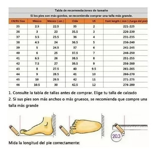 36=BR 34=MX 3=MX 23=CL 35.5=Longitud de la pierna 226-230 mm