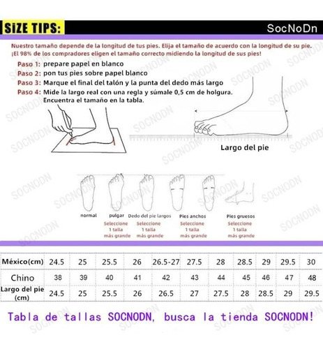 Declaração SOCNODN: Siga nossa loja SOCNODN, nos concentramos na qualidade do produto e na experiĂȘncia do cliente. E cada par de sapatos passarĂĄ por dois procedimentos de inspeção antes da entrega, para que vocĂȘ receba um calçado satisfatĂłrio.