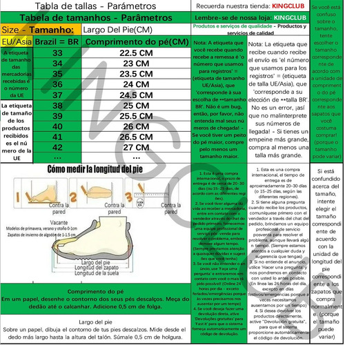 ***** Nota: Se você está confuso sobre os tamanhos (que podem ser diferentes dos do seu país), escolha o tamanho do pé com base no comprimento! ! ! !