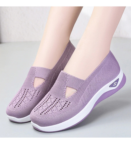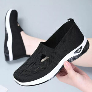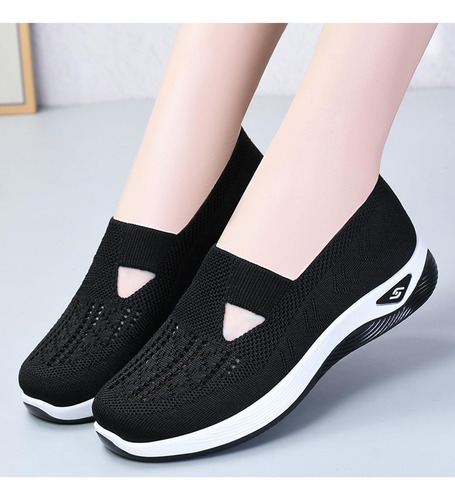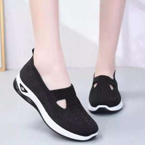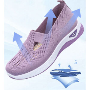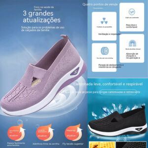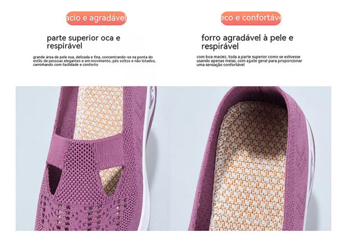 É um calçado feminino elegante e confortável com um design simples mas desportivo. A parte superior é feita de malha respirável de alta qualidade para manter os pés secos e confortáveis. O corpo do sapato é feito de materiais leves, permitindo que você se sinta mais livre e flexível enquanto se move.