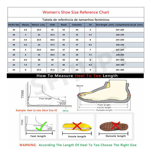 Nota de compra: Nossos sapatos são de tamanho europeu, escolha o tamanho de acordo com o comprimento do seu pé e consulte as instruções da tabela de tamanhos.