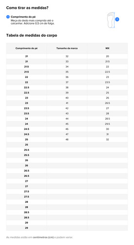 Se a sola e a parte de trás do peito do pé forem relativamente largas, escolha o tamanho um maior