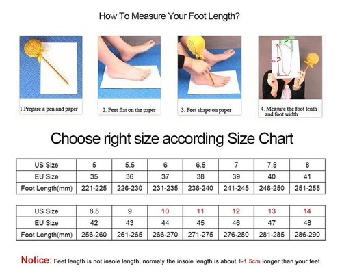 Nosso tamanho é padrão CN/UE, escolha o tamanho certo de acordo com o comprimento dos pés caso você confunda com o tamanho: se seus pés forem mais grossos ou maiores, escolha um tamanho maior: