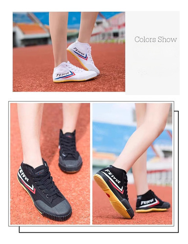 design respirável com um forro de tecido confortável para manter os pés secos; o salto plano e a sola de borracha vulcanizada proporcionam uma excelente experiência de uso, mesmo para longas caminhadas.