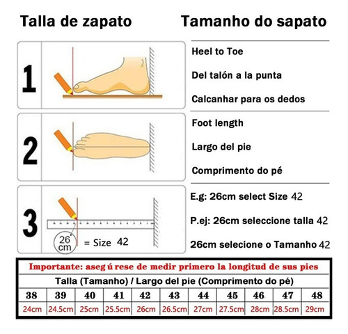 Caro comprador. Se você não sabe qual tamanho escolher. Por favor, consulte o tamanho abaixo correspondente ao comprimento do pé.