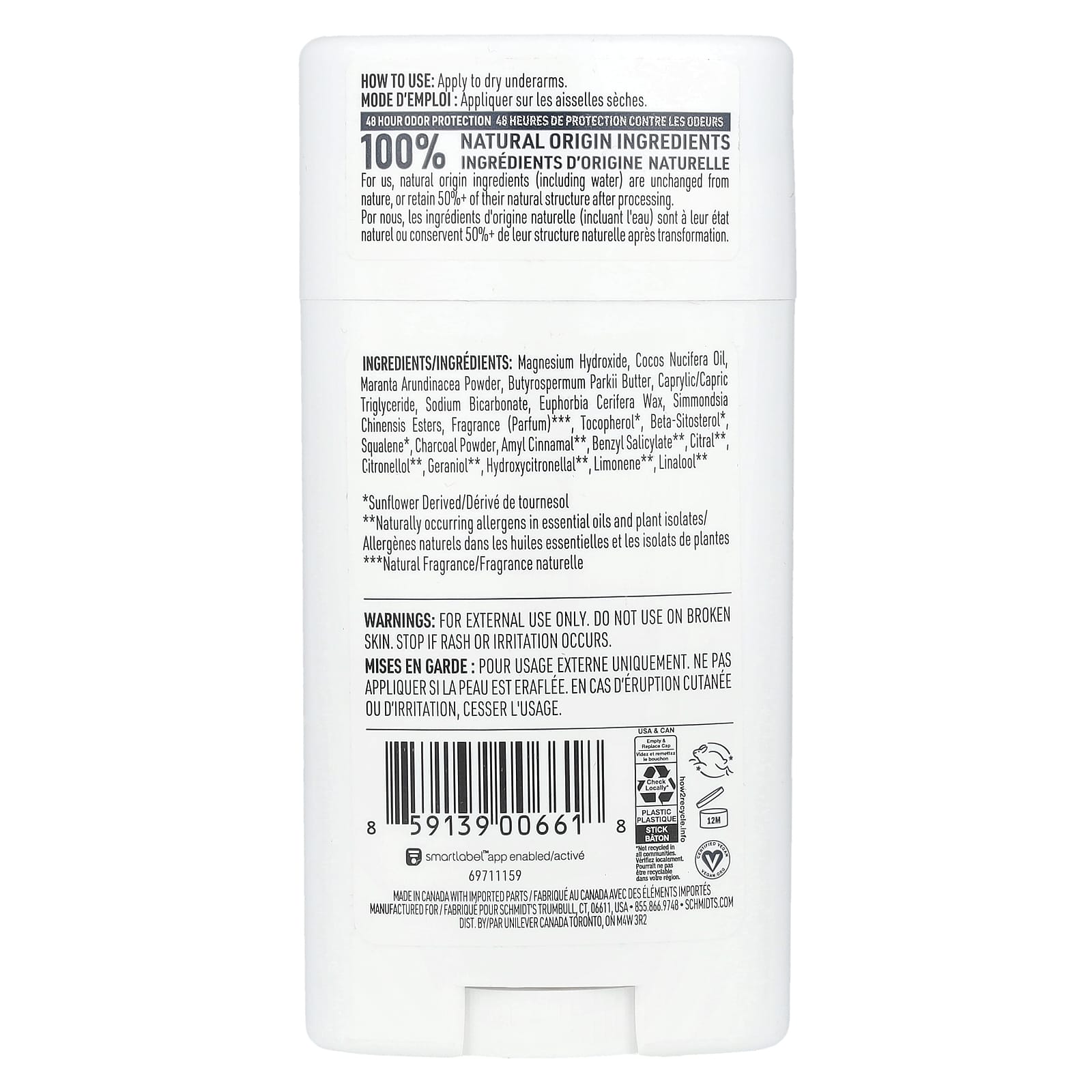 Schmidts Desodorante Carvão Vegetal e Magnésio 75 g (265 oz) – Schmidt’s Banho e Cuidados Pessoais Cuidados Íntimos Desodorante.