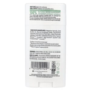Hidróxido de magnésio, óleo de Cocos nucifera, Maranta arundinacea em pó, caprylic/capric triglyceride, manteiga de Butyrospermum parkii, bicarbonato de sódio, cera de Euphorbia cerifera, ésteres de Simmondsia chinensis, fragrância (perfume)***, tocoferol*, betasitosterol*, esqualeno*, amil cinamaldeído**, limoneno**.