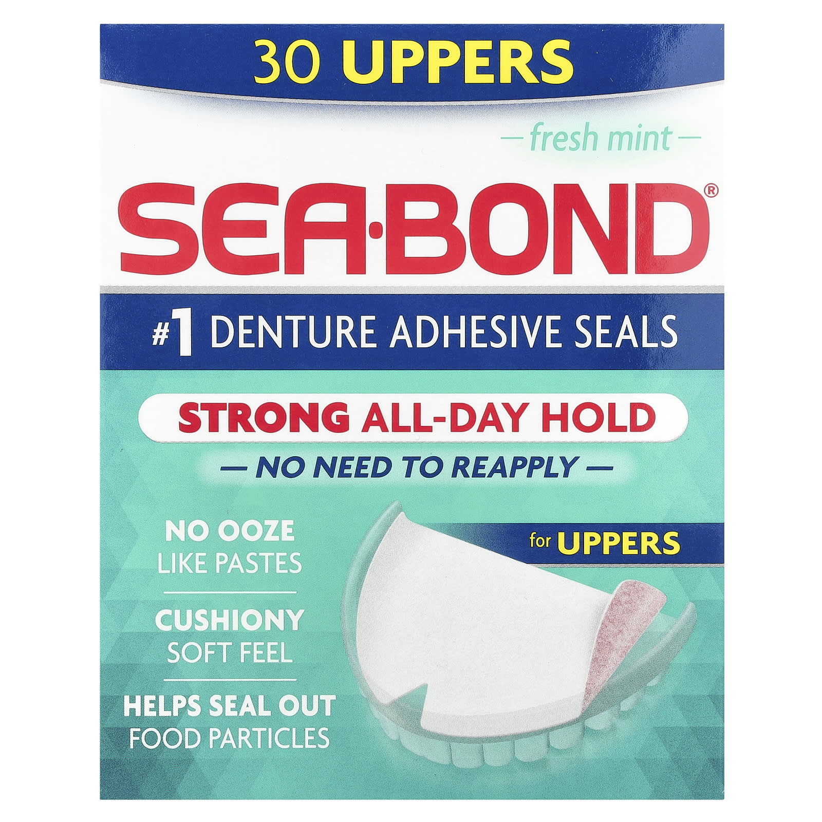 SeaBond Selos Adesivos de Prótese Hortelã Fresca 30 Parte Superior – SeaBond Banho e Cuidados Pessoais Higiene Bucal Acessórios de cuidados orais.