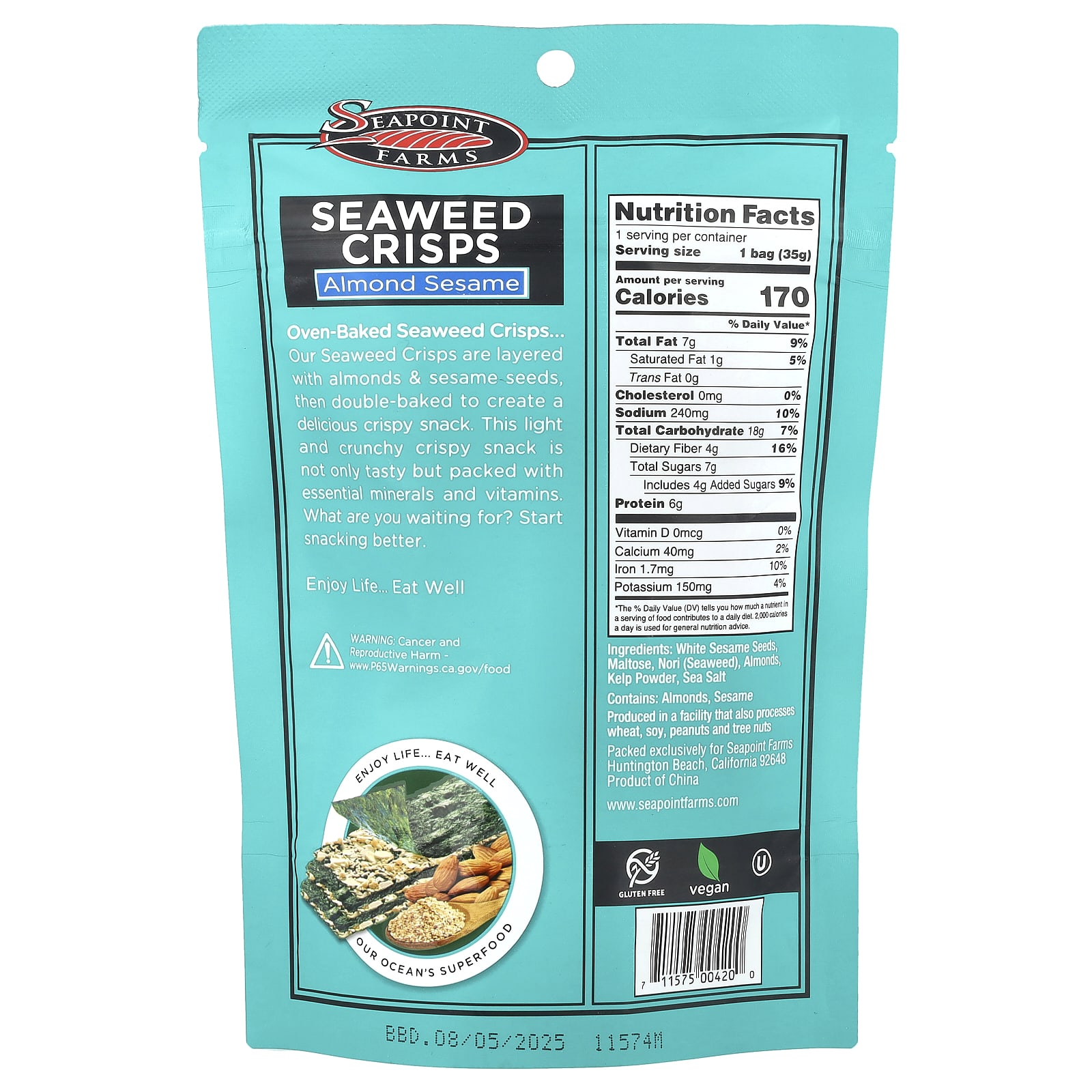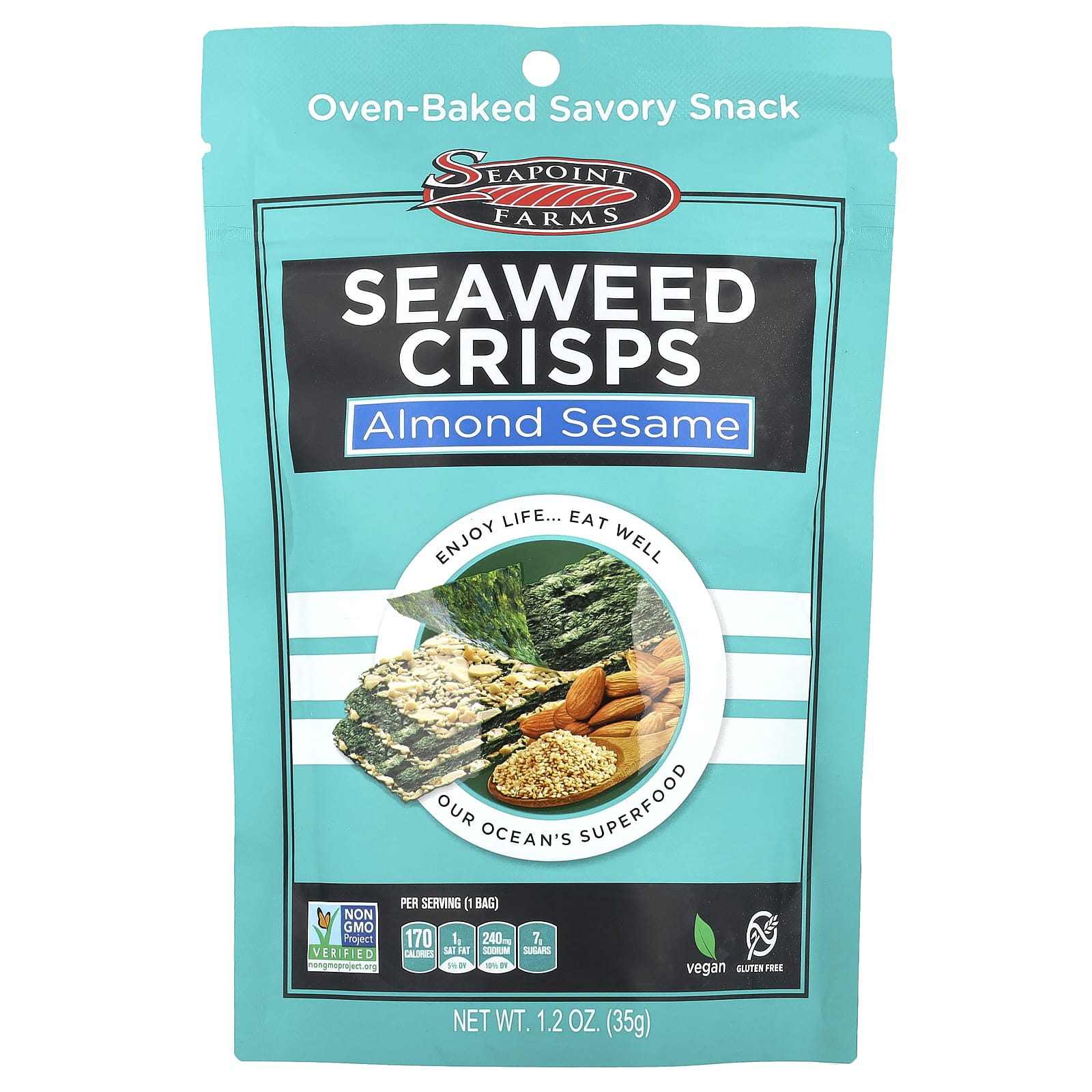Seapoint Farms Crisps de Algas Amêndoas e Gergelim 12 oz (35 g) – Seapoint Farms Alimentos Petiscos e lanches Petisco de alga marinha.