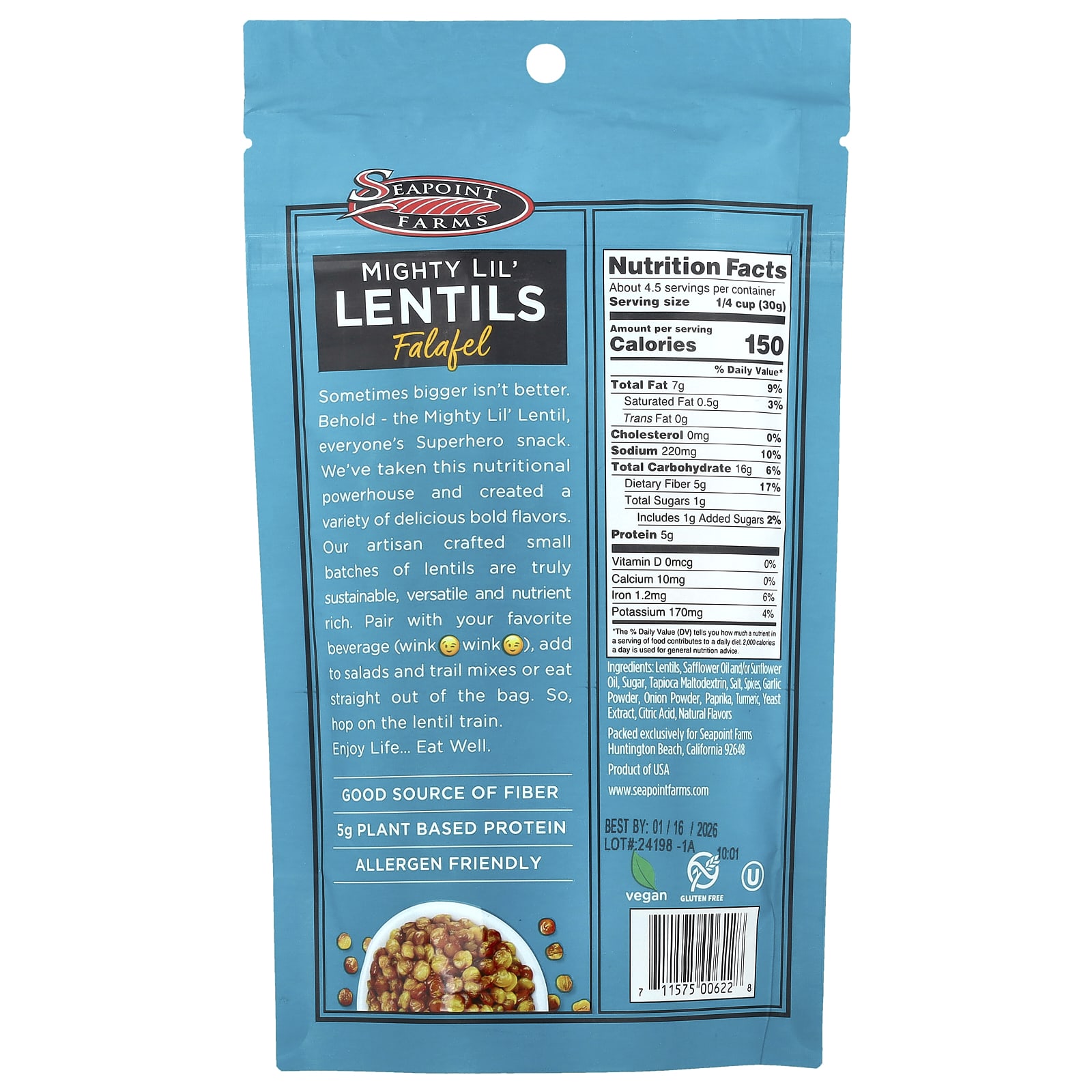 Seapoint Farms Mighty Lil lentils Falafel 142 g (5 oz) – Seapoint Farms Alimentos Petiscos e lanches Snacks de frutas e vegetais.