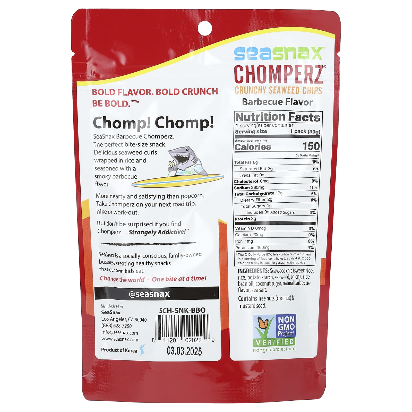 SeaSnax Chomperz Chips Crocantes de Algas Marinhas Sabor Churrasco 30 g (1 oz) – SeaSnax Alimentos Petiscos e lanches Petisco de alga marinha Snacks crocantes.