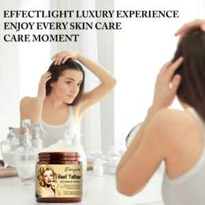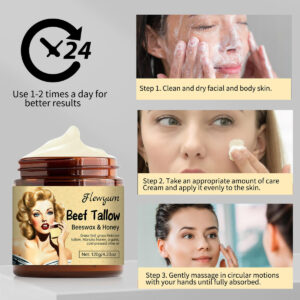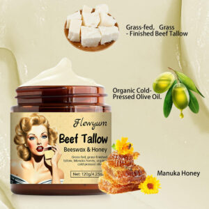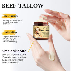 Creme facial orgânico – hidratante facial de sebo: nosso bálsamo de sebo e mel é batido em uma textura leve e arejada que é agradável de espalhar na pele. Nós o projetamos para ser tão satisfatório de usar quanto os cremes de pele convencionais. Sem ftalatos, parabenos e produtos petroquímicos. – Hidratante natural: nosso sebo batido é preenchido até a borda com ingredientes que adoram a pele, como vitaminas D, E, colina e ácidos graxos, que nutrem sua pele melhor do que qualquer produto no mercado. Use este creme como hidratante facial e loção corporal. – Qualidade premium: nos dedicamos a oferecer soluções para a pele que priorizam a eficácia e a sustentabilidade. Nosso processo de produção em pequenos lotes utiliza apenas os melhores ingredientes orgânicos, garantindo um produto em que você pode confiar. – Adequado para todos os tipos de pele: nosso bálsamo de sebo e mel é adequado para todos os tipos de pele, pele seca e oleosa, proporcionando hidratação profunda e alívio calmante com resultados perfeitos. – Harmonioso, natural e amigável: o uso de sebo e mel em produtos para a pele ajuda a reduzir o impacto ambiental da indústria e apoia o uso responsável de recursos naturais, promovendo uma abordagem mais sustentável e ecológica dos cuidados com a pele.