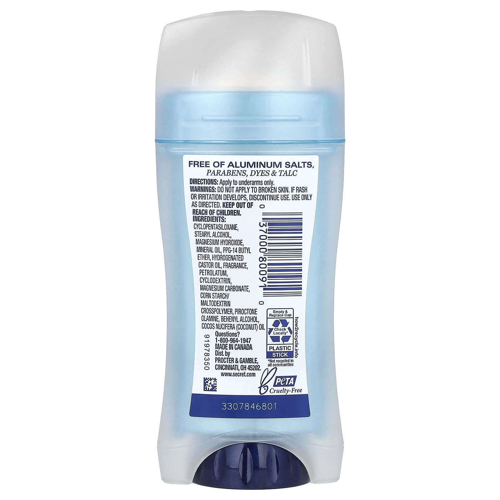 Refresque-se com este Desodorante Sem Alumínio da Secret, feito com ingredientes de verdade que fornecem proteção duradoura contra odores indesejados por 48 horas. O Desodorante da Secret é sempre feito com ingredientes hidratantes de verdade. Esta formulação especial oferece grande proteção contra odores e não contém sais de alumínio, parabenos, corantes e talco. O Desodorante para Mulheres da Secret tem orgulho de usar a marca Beauty Without Bunnies, demonstrando nosso compromisso em ser sempre 100% certificado pela PETA e livre de crueldade.
