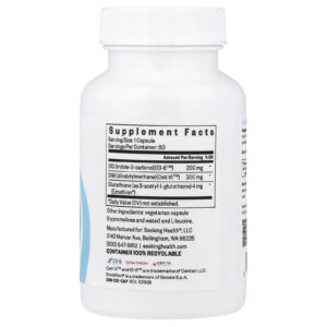 Seeking Health DIM + I3C com Glutationa 60 Cápsulas – Seeking Health Suplementos Saúde da Mulher DIM Suporte à perimenopausa e à menopausa.
