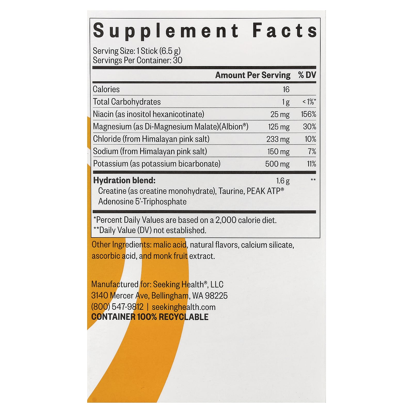 Seeking Health Eletrólito Ideal Laranja 30 Embalagens 65 g (0229 oz) Cada – Seeking Health Nutrição Esportiva Hidratação e Eletrólitos.